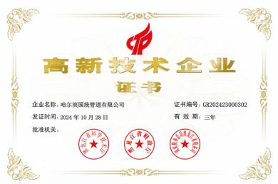 哈爾濱國(guó)統(tǒng)高新技術(shù)企業(yè)證書